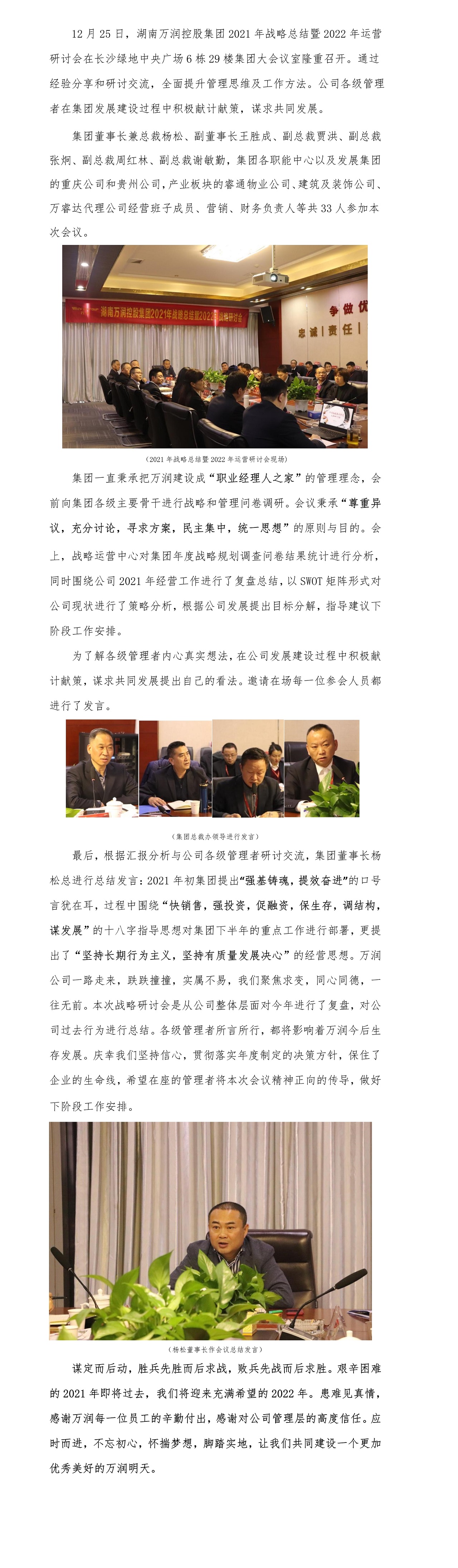 12月25日,湖南ob欧宝体育网页版控股集团2021年战略总结暨2022年运营研讨会在长沙绿地中央广场6栋29楼集团大会议室隆重召开。通过经验分享和研讨交流,全面提升管理思维及工作方法。公司各级管理者在集团发展建筑过程中积极献计献策,谋求共同发展。